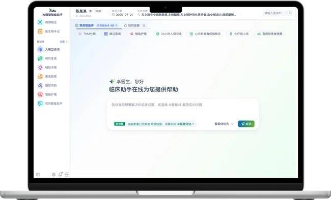 这些智能体均源自院内场景的深度打磨:医渡科技已在多家合作医院的线余个专科智能体,这些智能体经领域专属数据训练并完成临床场景深度验证。专科“顾问团”的协同发力,解决了通用AI“泛而不精”的痛点,为医生提供更贴合实际诊疗逻辑的决策支持。