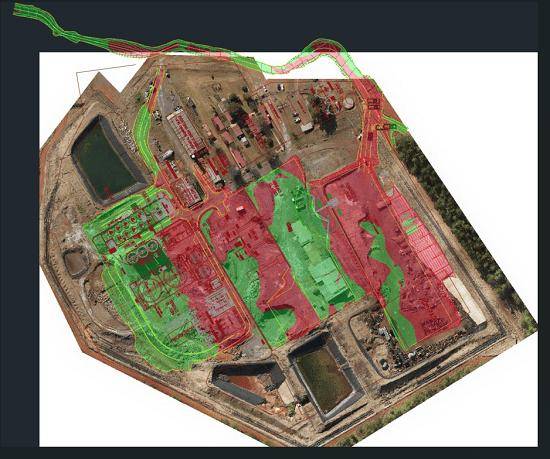 大规模土方工程挖方与填方需求示意图(红域为挖方区,绿域为填方区)