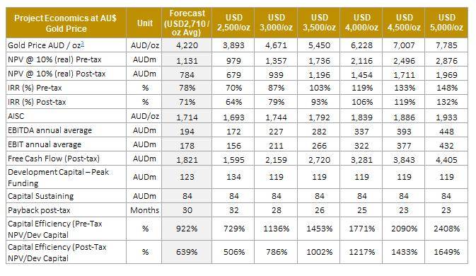 假若黄金价格5,000美元/盎司(备注:这也是坊间不少投资人预计的黄金牛市鼎盛时的价格)的极端情境下,项目税后NPV可逼近 19.7亿澳元,IRR高达 132%。