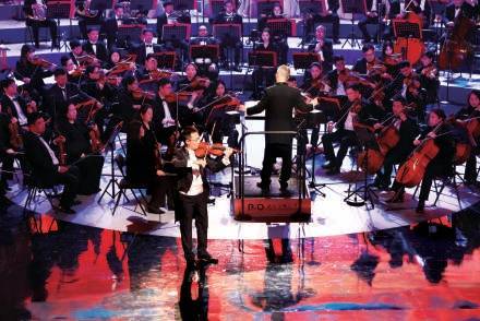音乐会下篇“多彩未来·盛世华章”,用音乐描绘“蓝绿交织、创新引领”的未来图景。在《如愿》的深情旋律中既有对先辈的致敬,也有对今日科技创新、大美生态的礼赞,正如永定河畔的绿水青山,大西山脚下的锦绣家园,都是先辈梦寐以求的盛世模样。“金色丰碑·强国有我”乐章,《当那一天来临》的铿锵节奏响起,展现新时代军人捍卫和平的决心,也凝聚起中华儿女团结奋斗的磅礴力量。