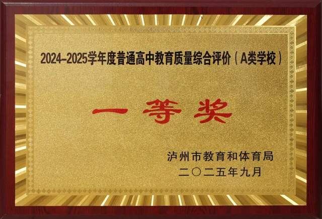 △ 泸县二中、泸县二中实验学校荣获2024-2025年度泸州市普通高中教育质量综合评价(A类学校)一等奖!