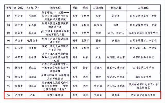 △ 泸县二中地理学科中心张菁菁、唐秀英老师的实验教学案例——《探究土壤质地》入选2025年四川省中小学实验教学能力展示活动优秀案例名单!