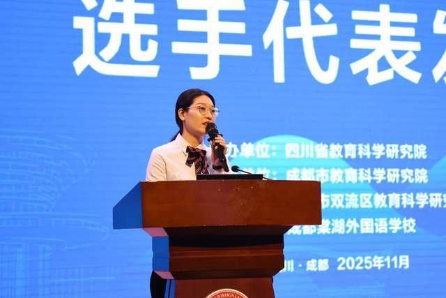△ 泸县二中实验学校夏玉兰老师荣获省高中语文展评课一等奖第一名,并作为参赛代表讲话。