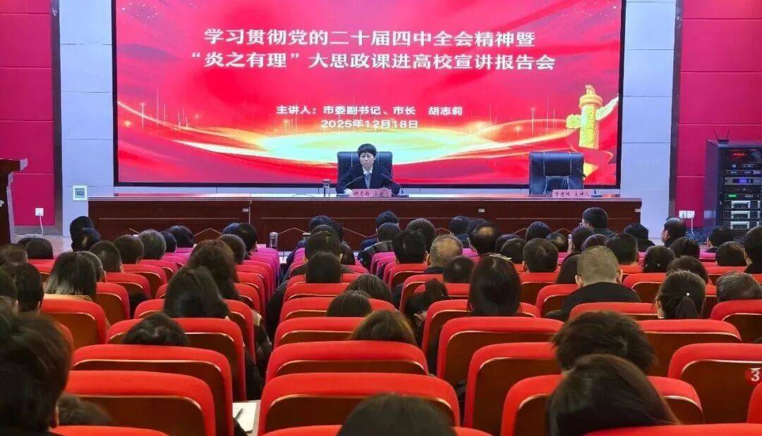 △12月18日,随州职业技术学院学术报告厅举行学习贯彻党的二十届四中全会精神暨“炎之有理”大思政课进高校宣讲报告会。