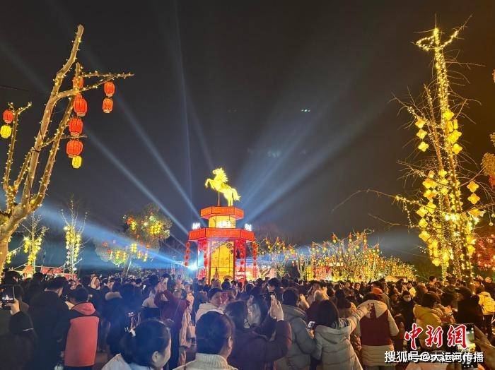 2月28日晚,扬州宋夹城体育休闲公园内,千余盏扬州灯彩将古城夜色装点得璀璨夺目。扬州市文广旅局供图