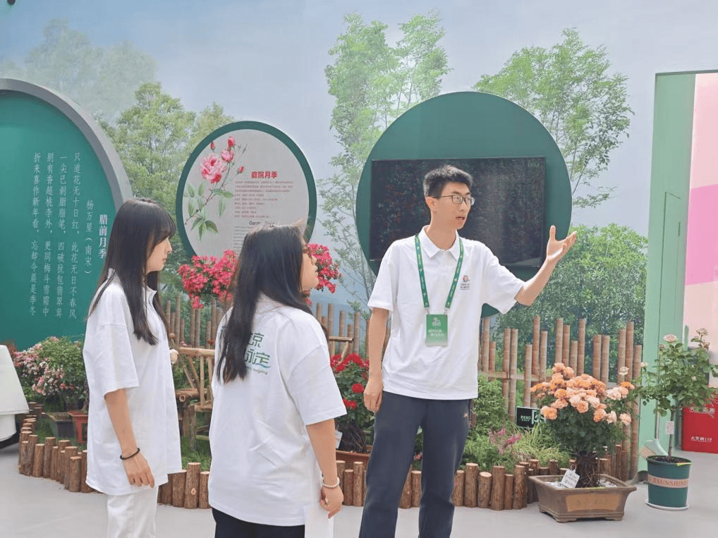 “青语铸梦”专项服务队11名志愿者聚焦月季展区讲解工作,细致介绍月季品种、培育知识及大会特色,将月季跨越国界的美好希冀向世界人民传递。
