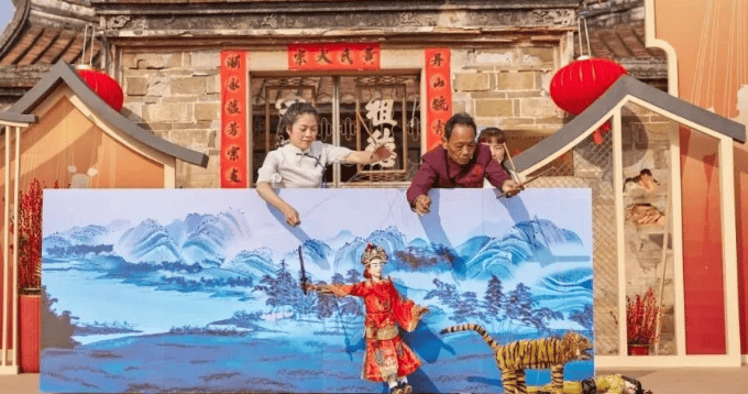 清代闽南民居古城堡诒安堡内,丰归文化芗剧团的提线木偶戏民间艺人、自媒体主播蔡冬梅自办“村晚”。背后,闽南古厝别具特色;手里,提线木偶跳跃翻腾;口中,歌仔戏婉转悠扬……一场直播,吸引169万人次观看,也让藏在乡野的城内村被更多人知晓。