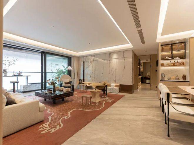 获得业主的一致好评。推门而入就是私属礼宾前厅,以艺术馆般的归家序厅赢得青睐。挑高的天花以极简金属造型线条勾勒出开阔的视野,