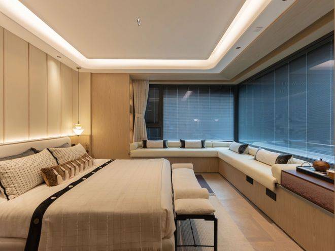 这个户型还做了双套房,主卧开间约3.8米,南次卧套房的开间也达到3.15米,保障家庭成员的私密性和尊崇感的同时,让生活井然有序。