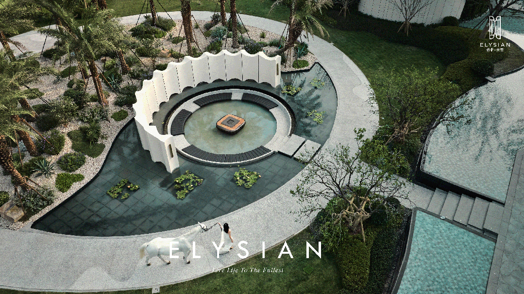 ,保利天奕采用了内外一体化开发手法,主动向绿地退让10米,在城市与社区之间,打造一条半开放的公园界面,柔化了社区和城市的边界。这次保利非常巧思的一个点在于,它把目光放置全球具有度假感的花园场景,打造出米勒花园、巴厘岛岛屿水院、红酒派对花园、森林浴花园以及毕加索儿童乐园五大花园。