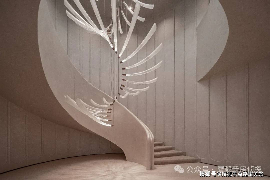 保利天奕售楼处电线度弧面转角。重塑景观和建筑的关系,于外创造更柔和的建筑视觉效果,从内部也能打开更广角的观景视野。