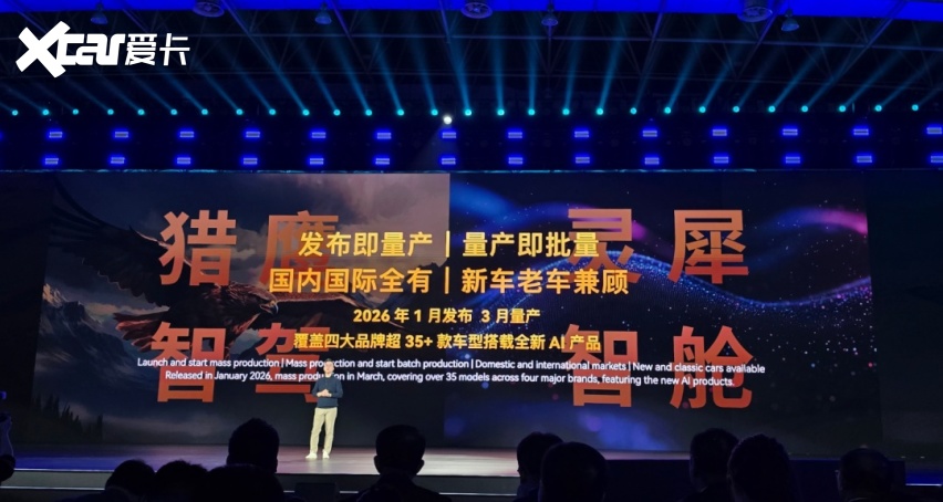 奇瑞汽车股份有限公司执行副总裁李学用在 AI 之夜上表示,灵犀座舱会在 2026 年一季度全面上车,全品牌全系主力车型搭载,猎鹰 500/700 普及搭载,未来上市的所有增混车型的纯电续航都会在 200 公里以上。