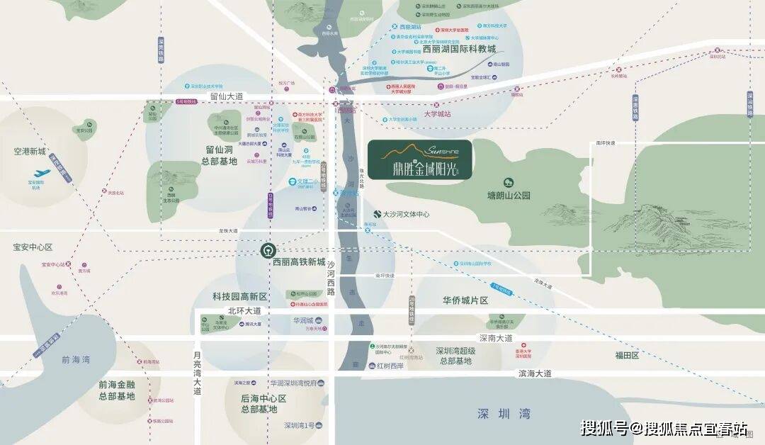 项目坐落于大沙河生态长廊这条深圳高质量发展的“黄金水道”之上,以深圳湾为端口的中轴线,南端连接深圳湾超级总部基地,北端衔接西丽湖国际科教城,构建起城市发展的核心脉络。